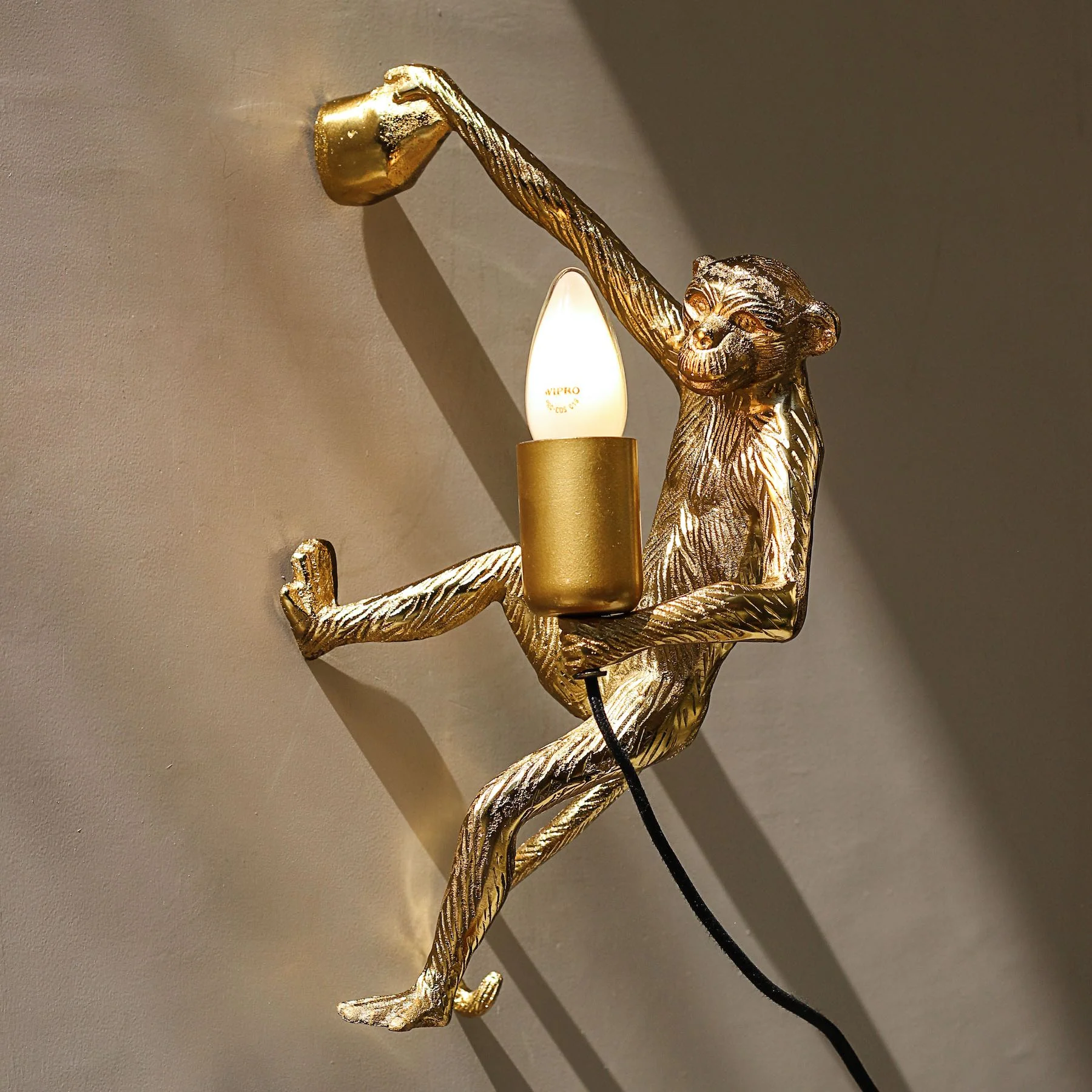 Add playful charm to your space with this gold-finished monkey wall lamp—perfect for eclectic, modern, or artistic interiors.